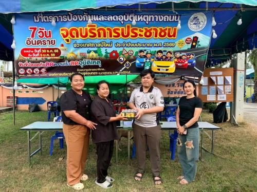 เพื่อขอบคุณ ให้กำลังใจ และมอบเครื่องดื่มแก่เจ้าหน้าที่ผู้ปฏิบัติงาน ณ บริเวณจุดตรวจเยี่ยม ที่อำนวยความสะดวกและดูแลความปลอดภัยในการเดินทางของประชาชน ตลอดจนป้องกันและลดอุบัติเหตุทางถนนให้เกิดความปลอดภัยสูงสุดในช่วงเทศกาลปีใหม่
