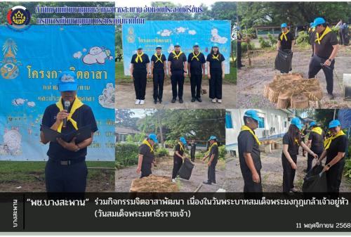 นายฉัตริน สุวรรณหงส์ พัฒนาการอำเภอบางสะพาน พร้อมด้วย เจ้าหน้าพัฒนาชุมชนอำเภอ ร่วมกิจกรรมจิตอาสาพัฒนา เนื่องในวันพระบาทสมเด็จพระมงกุฎเกล้าเจ้าอยู่หัว (วันสมเด็จพระมหาธีรราชเจ้า) โดยมีนายสุทิน ประเสริฐศักดิ์ เป็นประธานในพิธีฯ