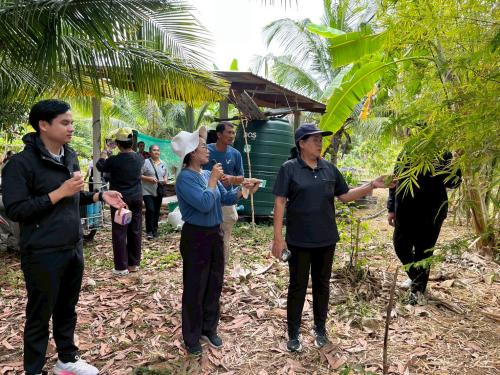 นายฉัตริน สุวรรณหงส์ พัฒนาการอำเภอบางสะพาน มอบหมายเจ้าหน้าที่พัฒนาชุมชน ร่วมกิจกรรมสนับสนุนการขับเคลื่อนศูนย์การเรียนรู้การพัฒนาคุณภาพชีวิตตามหลักทฤษฎีใหม่ประยุกต์ ”โคก หนอง นา“ จังหวัดประจวบคีรีขันธ์ กิจกรรมกินข้าว เล่าเรื่อง “โคกหนองนา” ณ ศูนย์เรียนรู้การพัฒนาคุณภาพชีวิตตามหลักทฤษฎีใหม่ประยุกต์สู่โคกหนองนา ณ แปลงนางสาวนันทกานต์ เทียนเพ็ชร บ้านทางสาย หมู่ที่ 9 ตำบลธงชัย อำเภอบางสะพาน